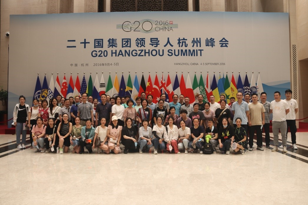 在杭州G20峰會(huì)會(huì)場(chǎng),公司黨員、骨干實(shí)地參觀了2016年杭州G20峰會(huì)主會(huì)場(chǎng)等場(chǎng)館,認(rèn)真聆聽(tīng)了場(chǎng)館講解員對(duì)G20峰會(huì)會(huì)場(chǎng)各種設(shè)施的介紹。這座在杭州國(guó)際博覽中心設(shè)計(jì)與改造完成的G20峰會(huì)會(huì)場(chǎng),體現(xiàn)出“恢弘氣勢(shì)和雅正平和”的特點(diǎn),我們能工巧匠秉承“大國(guó)風(fēng)范、江南特色、杭州元素”的總體思路,將絲綢、紗燈、木雕等頗具中國(guó)特色的江南元素融入到了設(shè)計(jì)之中,充分體現(xiàn)了「禮、合、仁」的三個(gè)主題。